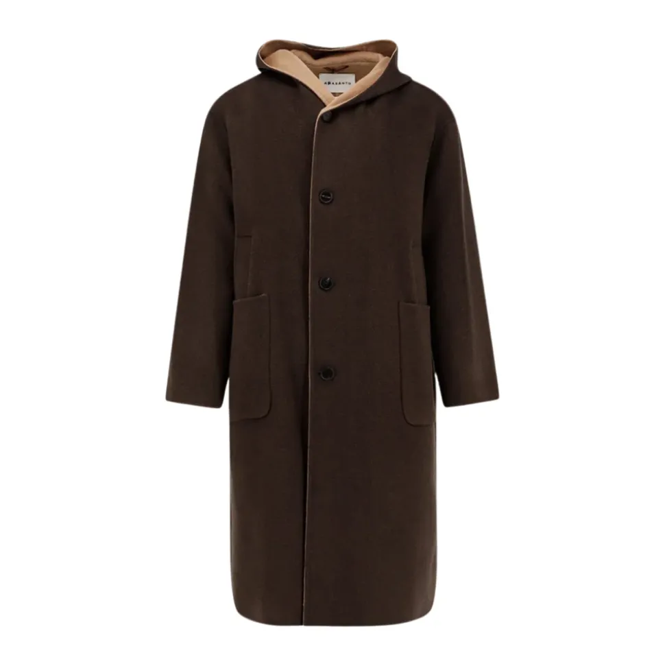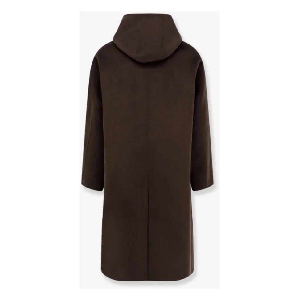 AMARÁNTO uld- og cashmerefrakken kombinerer en varm uld-cashmereblanding med et design med hætte og knaplukning for praktisk brug udendørs. Vigtige egenskaber: Brun | Moro | Cammello | Uld og cashmere | Isolerende uld-cashmereblanding | Knaplukning | Dobbelte forlommer | Hætte | Enkeltradet front | Kontrastfor | Sammensætning & pleje: 95% uld | 5% cashmere