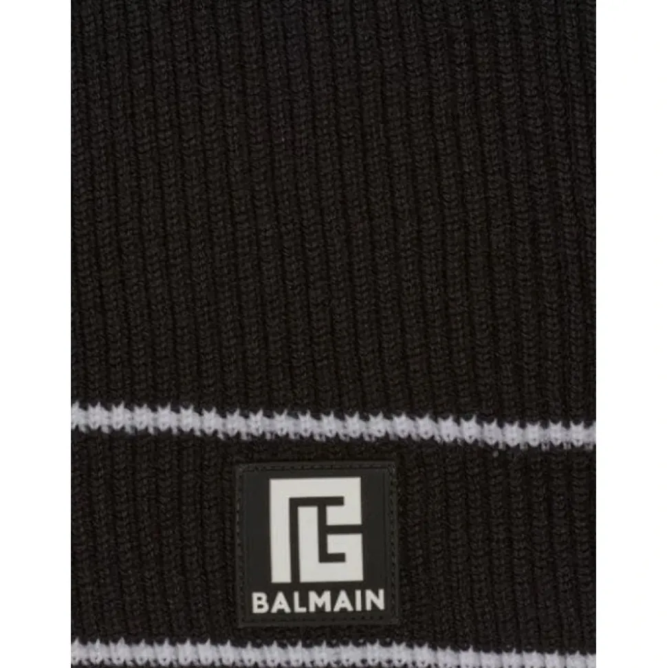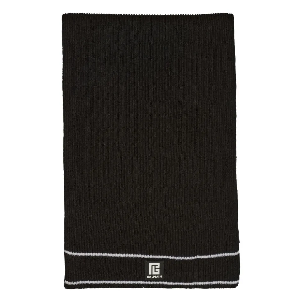 Hold dig varm og stilfuld med det sorte uld patch halstørklæde fra Balmain, fremstillet af luksuriøs merinould for ultimativ komfort og elegance. Produkt detaljer: Sort | Merinould | Logo patch | Ribstrikket tekstur | Dimensioner og pasform: Regular fit | Sammensætning og pleje: 100% Merinould | Renseri anbefales