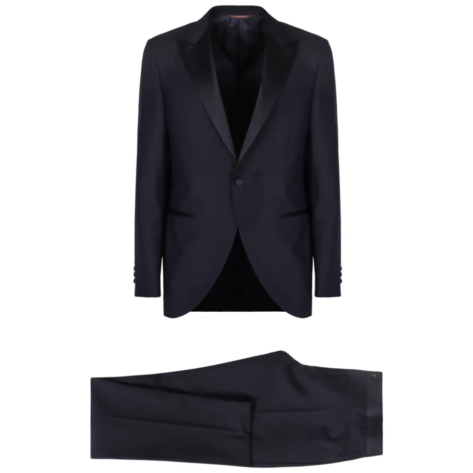 Forhøj din formelle look med dette Canali single-breasted jakkesæt til mænd. Lavet af 100% uld, det har en satin reverskrave, to stiklommer, brystlomme og bukser med sidelommer. Hem med dobbelt slids bagpå.
