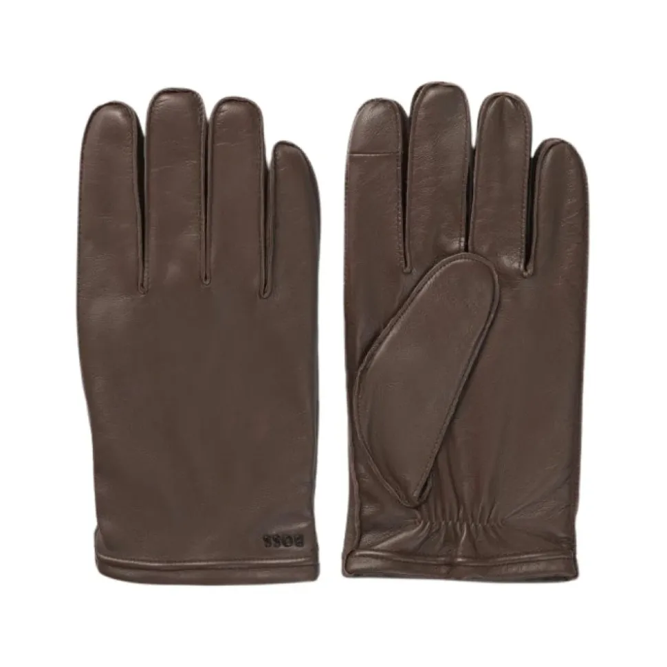 BOSS uldforede handsker i læder tilbyder smidigt lammeskind med et varmt uldblandingsfor og berøringsskærm-kompatible fingerspidser til hverdagsbrug i koldt vejr. Nøgleegenskaber: Brun | Lammeskind | Varmt uldblandingsfor | Berøringsskærm-venlige fingerspidser | Logo bogstaver | Smidig læderfinish | Sammensætning & pleje: 100% lammeskind | For: 80% uld, 20% polyamid | Må ikke vaskes. Må ikke bleges. Må ikke tørretumbles. Må ikke stryges. Skånsom rensning.