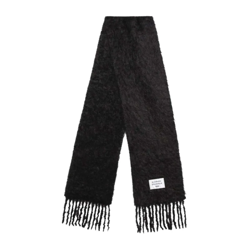 Acne Studios uldtørklæde med logo er et vintertilbehør i mohairblanding, der giver en blød, fuzzy tekstur og en karakteristisk logo-etiket. Designet til varme og alsidig lagdeling, det er velegnet til hverdagsbrug i koldt vejr. Vigtige egenskaber: Sort | Sort melange | Mohair | Varmt | Blød følelse | Fuzzy tekstur | One size | Frynser i enderne | Rektangulær silhuet | Acne Studios logo-etiket | Børstet finish | Frynser i enderne | Mål & pasform: Bredde: 27 cm | One size | Sammensætning & pleje: 71% Mohair | 21% Uld | 8% Nylon