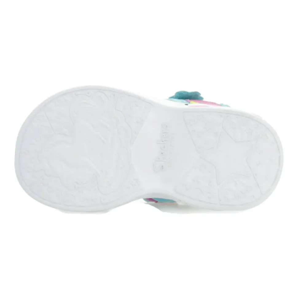 Træd ind i en magisk verden med Unicorn Dreams Sandaler fra Skechers, perfekte til sommerens eventyr med deres lysfunktion og sikre pasform. Produkt detaljer: Multicolor | Justerbar velcrolukning | Komfort indersål | Lysfunktion | Dimensioner og pasform: Sikker pasform |