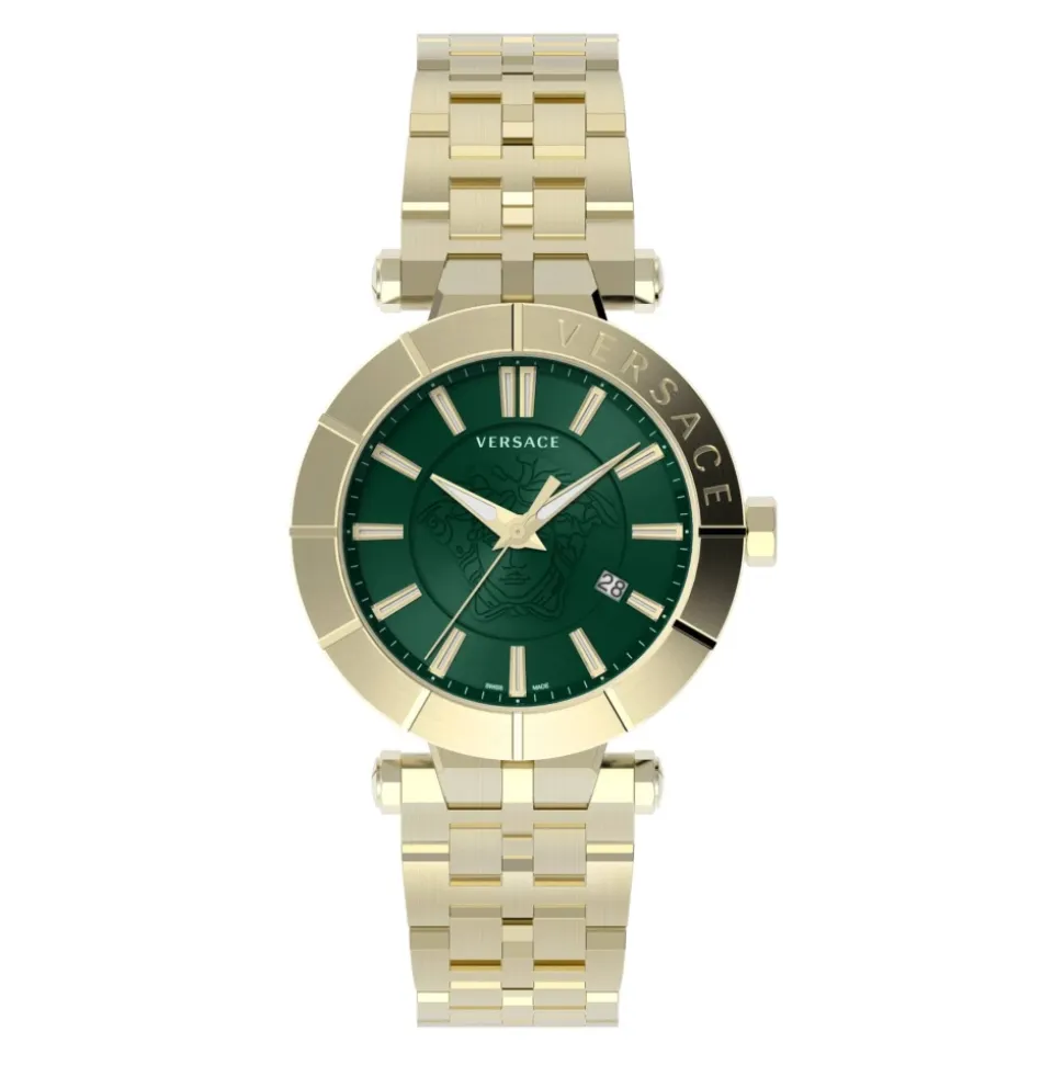 Opdag Versace V-RACE 43 RESTYLING uret til mænd, et elegant og stilfuldt ur, der udstråler luksus. Med et kvartsurværk har dette ur en sort læderrem, sort urskive og rustfrit stålkasse. Med vandtæthed og safirglas er dette ur både funktionelt og moderigtigt. Forfin dit look med dette ikoniske Versace-tilbehør.