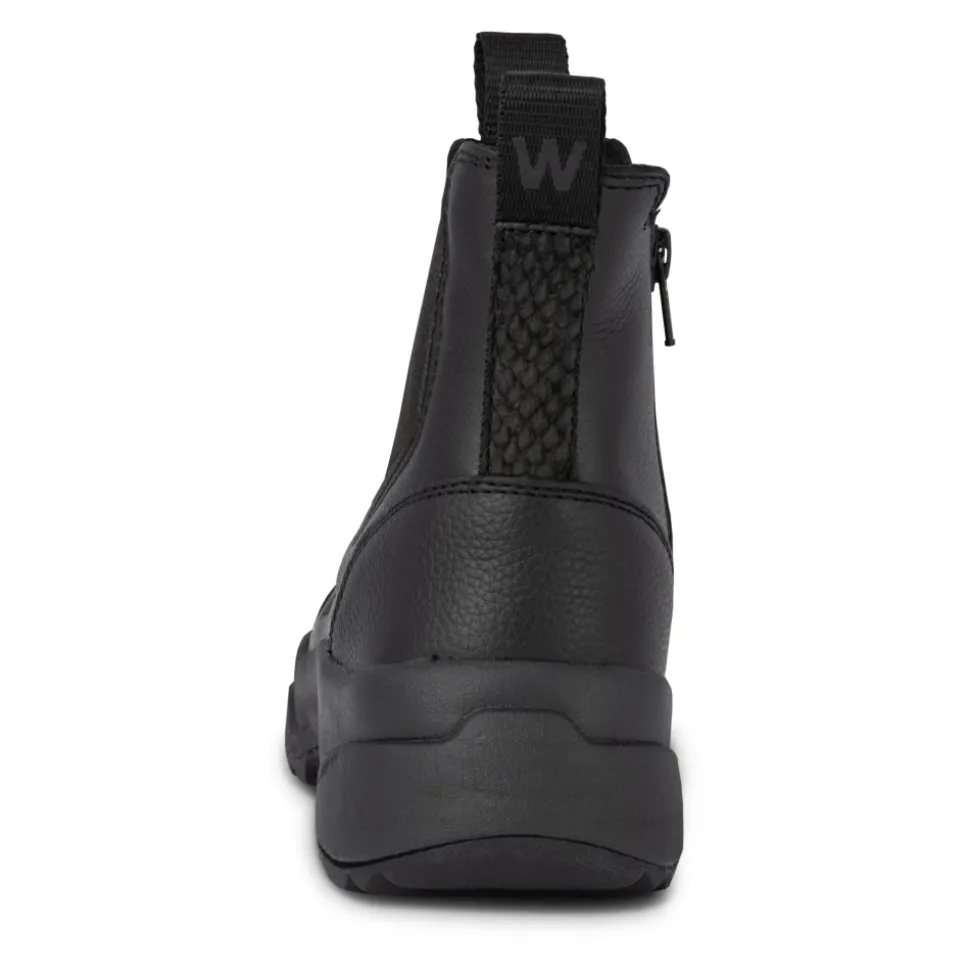 Hold dig stilfuld og praktisk med Silje vandtætte slip-on støvler, der har et elegant sort design og varmt for for ultimativ komfort. Produkt detaljer: Sort | Læder | Vandtæt | Varmt for | Indvendig YKK lynlås | Elastiske sider | Fiske læder hældetalje | Dimensioner og pasform: Lidt smal pasform | Sammensætning og pleje: Tekstil | Kork | Aftørres med en fugtig klud