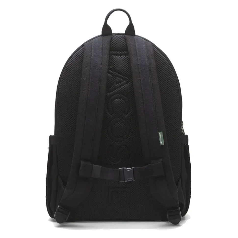 Lacoste Varsity Backpack kombinerer et maxi-logo i college-stil med en struktureret canvas-krop, hvilket giver et sporty, effektfuldt look og praktisk opbevaring til hverdagsbrug. Vigtige egenskaber: Sort | Nero | Bomuld | Struktureret, slidstærkt canvas for pålidelig brug | Frontlomme med fremtrædende logo | Rummeligt hovedrum | Gummi-krokodillemærke på øverste del | Maxi-logo i college-stil på frontlommen | Rene linjer og moderne sporty silhuet | Kontrasterende kantdetaljer | Sammensætning & pleje: 100% Bomuld | Følg plejeinstruktionerne på mærket indeni.