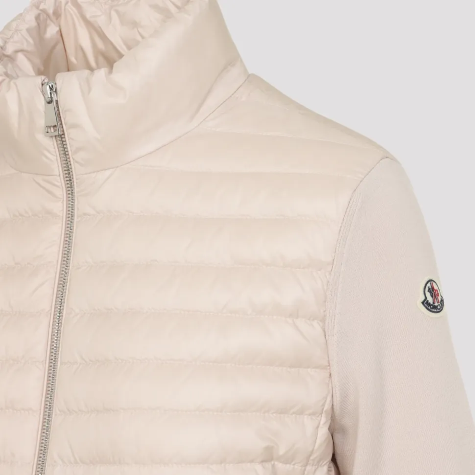 Moncler Vatteret Cardigan med Lynlås kombinerer et quiltet, isoleret korpus med strikkede ærmer for let varme og alsidig lagdeling. Nøgleattributter: Lys pink | Polyamid | Dunfyldt forside og bagside | Quiltet isolering for varme | Lynlåslukning foran | Sidelommer | Høj krave | Lange strikkede ærmer | Ribkanter | Lige kant | Signaturlogo på højre ærme | Vatteret/quiltet forside og bagside | Sammensætning & pleje: Polyamid | Bomulds- og nylonblanding (krave, ærmer og kant) | Dunfyld | Må ikke vaskes. Må ikke bleges. Må ikke tørretumbles. Stryges ved maksimalt 110°C uden damp.