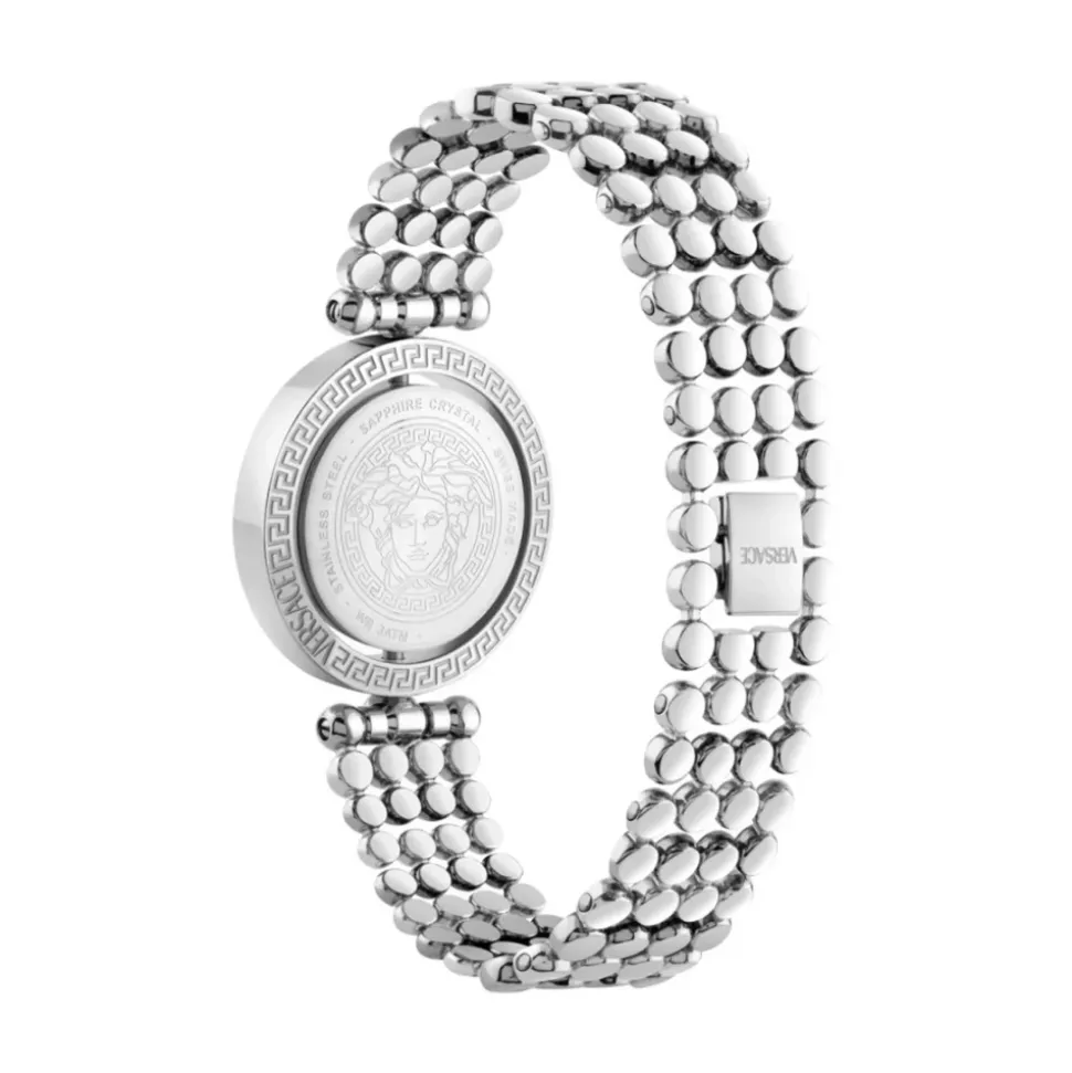 Versace VEHFA0325 Ur med en grå og sølvfarvet finish, designet til raffineret hverdags- og formelt brug. Nøgleattributter: Grå | Sølv