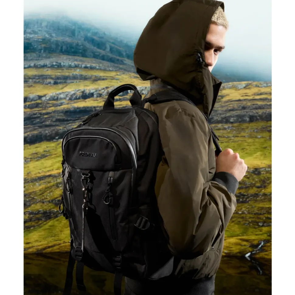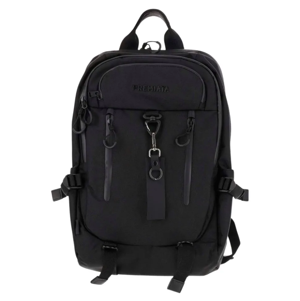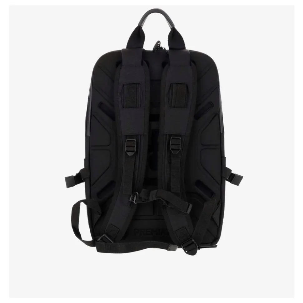 Udvikling af en ikonisk model fra Premiata. Stor kapacitet og teknisk udseende til en rygsæksmodel med en hybrid sjæl. Med en fascinerende, men usædvanlig kombination af form og funktion. Cordura hovedstof. Vandtæt lynlås. Intern lomme til bærbar computer. Indvendig foring af gabardin med logo. Varmeforseglede lynlåse. Øverste brystlomme med varmeforseglet lynlås. Stor forlomme med interne rum til tablet og notesblok. Mat sort krog med personliggjort Premiata nøglering. Læderforet håndtag. Brede EVA-skulderstropper for ekstra komfort. Dobbeltlags polstret ryg med logo. Sidelommer. Justerbare skulderstropper med læderkant. Mål Højde 48 cm Dybde 14 cm Bredde 31 cm