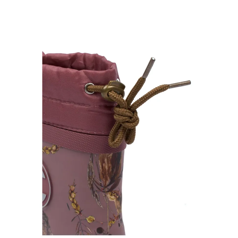 Mikk-Line – Winter Wellies AOP, 38036 – Rose Brown Varme vintergummistøvler med blødt uldfoer fra danske Mikk-Line. Denne i en skøn mørk rosa farve med et flot print over det hele af forskellige kornneg, strå og grene, tekstil øverst i skaftet i tone-i-tone rosa med snøre i brun.Gummistøverne er udstyret med stropper, som gør det nemmere for dit barn at tage gummistøvlerne på og af.I bunden af gummistøvsugerne er der en blød og udtagelig sål.Gummistøverne er vandtætte og holder dit barns fødder tørre og rene hele dagen lang. De er desuden forsynet med refleks detaljer, der gør barnet synligt i mørket.Den skridsikre sål gør det lettere for dit barn at gå på glatte overflader. Vi anbefaler et voksetillæg på ca. 1,2 cm på gummistøvler.Fordele:• Vandtætte gummistøvler• Nem at rengøre• Holder dit barns fødder tørre og rene• Refleksdetaljer, der øger sikkerheden for dit barn, når det er mørkt• Med den skridsikre sål er det nemmere for dit barn at gå på klumpet og glat underlag Materiale: 40% Gummi, 42% Calciumcarbonat, 18% Styrengummi Style no.: 38036_Rose BrownIndvendige mål:Str. 21: 13,8 cmStr. 22: 14,5 cmStr. 23: 15,0 cmStr. 24: 16,0 cmStr. 25: 16,5 cmStr. 26: 17,0 cmStr. 27: 17,5 cmStr. 28: 18,5 cmStr. 29: 19,0 cmStr. 30: 20,0 cmStr. 31: 20,5 cmStr. 32: 21,0 cmMål er vejledende og kan afvige med 1-2 milimeter. Plejevejledning:- Hvis der kommer vand ind i gummistøvlerne, kan du fjerne indlægssålerne og hænge dem til tørre.- Brug en vandbaseret imprægneringsspray (helst uden PFAS) til regelmæssigt at imprægnere gummistøvlerne. Dette hjælper med at fugte gummistøvlerne og forhindre dem i at revne. Undgå at sprøjte på ydersålen, da den kan blive glat.- Rengør gummistøvlerne ofte. Brug en blød klud med vand og almindelig opvaskesæbe.- Lad gummistøvlerne tørre ved stuetemperatur. Hvis der er vand indeni støvlerne/gummistøvlerne, fyld dem med avispapir der kan suge vandet.- Undgå at udsætte gummistøvlerne for sollys og ekstremt høje eller lave temperaturer i længere perioder.- Opbevar gummistøvlerne oprejst et tørt, mørkt og køligt sted.
