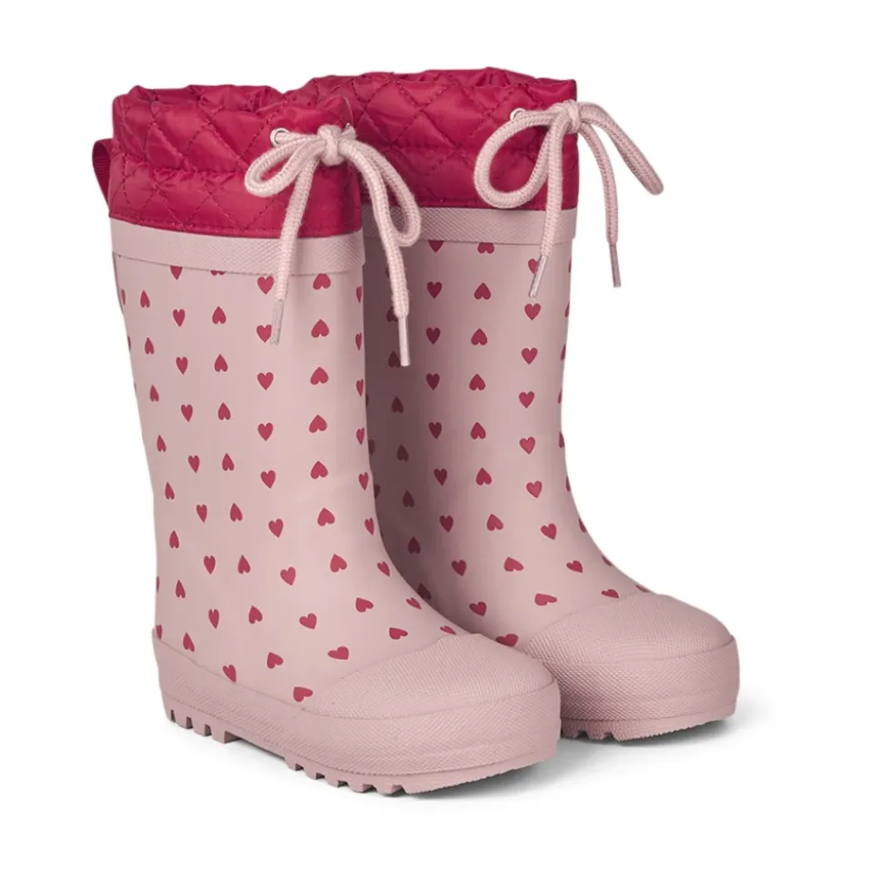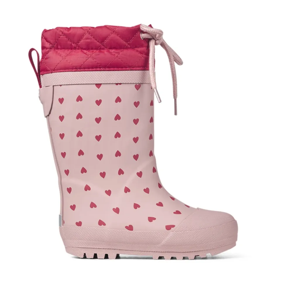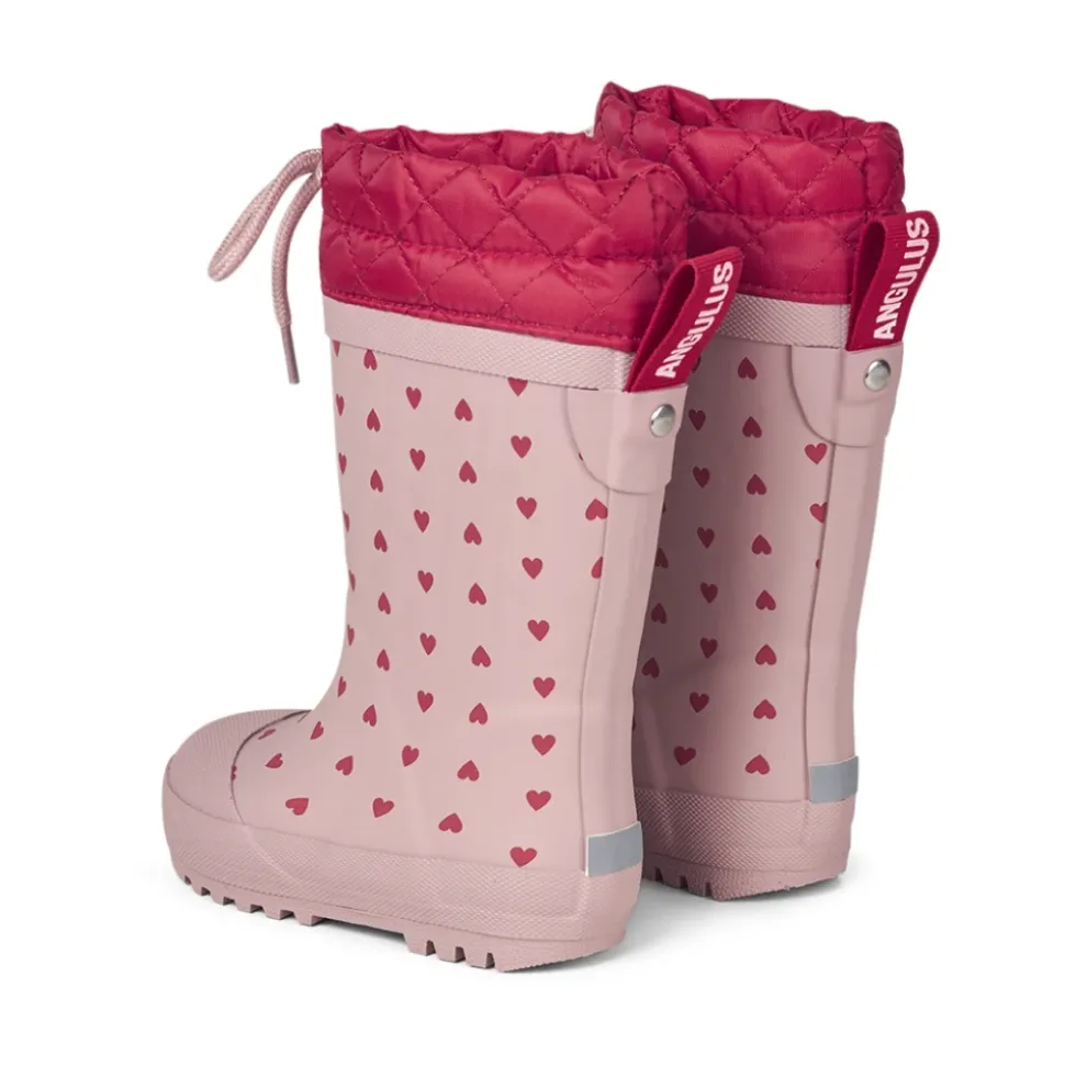 Angulus – Gummistøvle Med Uldfoer, 1012 – Rose Hearts / Red Skønne vinter gummistøvler med uldfoer fra Angulus.Denne i en flot rosa farve med et fint print af små hjerter i rød over det hele, rød tekstil øverst i skaftet med rosa snøre.Vintergummistøvlerne har en fremragende støtte og komfort. De er bløde og fleksible, lavet af vandtæt naturgummi og foret med en blød uldblanding. Støvlen har en sporty logorem bagtil, så den er nem at tage af og på. Den har en udtagelig indersål og ydersålen er en skridsikker gummi track sål. Perfekt til en kold regnfuld dag med munter leg.Støvlerne leveres i en praktisk rygsæk. Vi anbefaler et voksetillæg på ca. 1,2 cm på gummistøvler. Pasform: Læst: Normal pasform Materiale:Materiale: NaturgummiFoer: Uld mixSål: Naturgummi100% vandtæt, 100% naturgummi og 100% PVC fri. Style no.: 1012-001_0049 Indvendige mål:Str. 24: 15,8 cmStr. 25: 16,3 cmStr. 26: 17,1 cmStr. 27: 17,7 cmStr. 28: 18,3 cmStr. 29: 19,1 cmStr. 30: 19,7 cmStr. 31: 20,4 cmStr. 32: 21,2 cmStr. 33: 21,8 cmStr. 34: 22,5 cmStr. 35: 22,9 cmMål er vejledende og kan afvige med 1-2 milimeter.