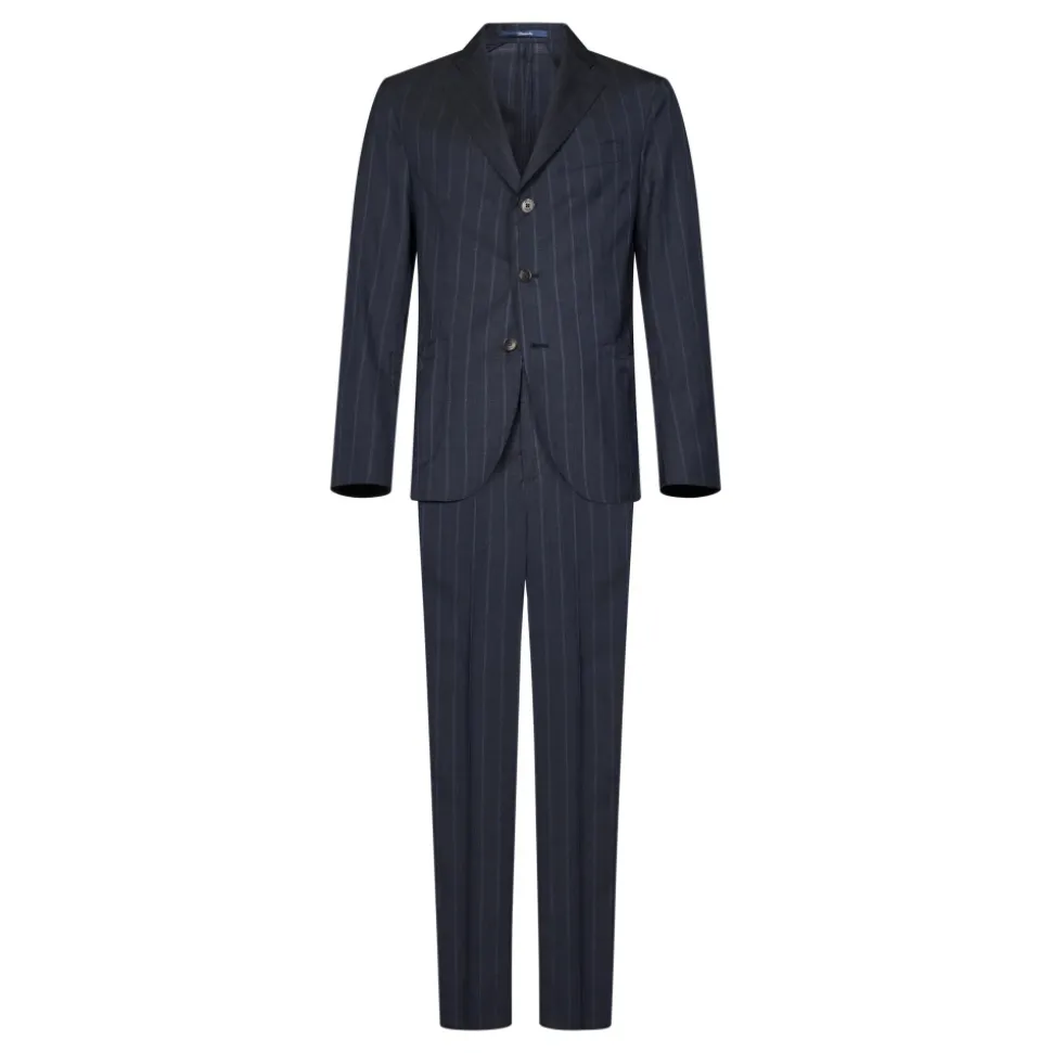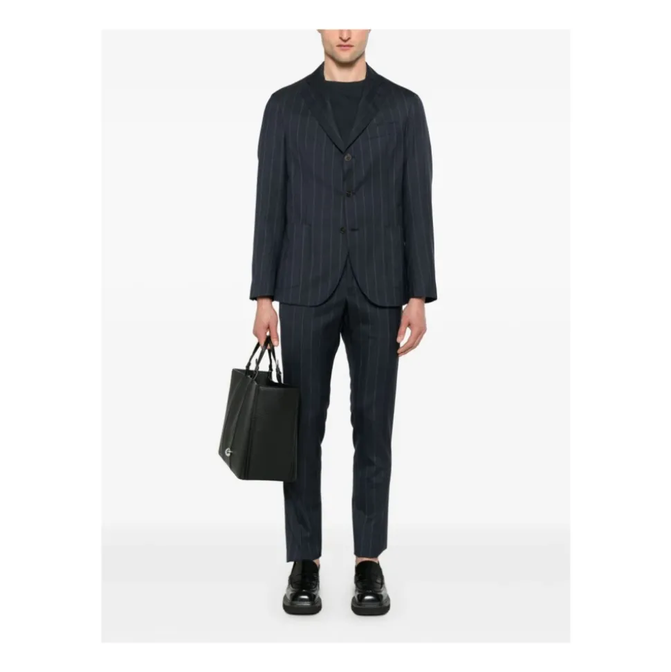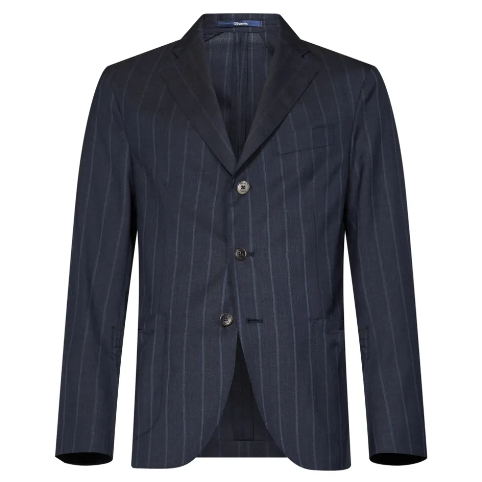 Drumohrs Virgin Wool Pinstripe Suit kombinerer raffineret pinstripe-skrædderi med en ren, struktureret silhuet. Den enkeltknappede blazer og de skræddersyede bukser leverer et poleret look til formelle lejligheder. Vigtige egenskaber: Blå | Virgin wool | Knaplukning | Knapmanchetter | Bæltestropper | Sidelommer | Paspolerede baglommer med knapper | Skjult lynlås på bukser | Pinstripe-mønster | Hakket revers | Enkeltknappet blazer | Tre-knaps lukning | Påsatte lommer | Brystpaspoleret lomme | Dobbelt slids bagpå | Skræddersyede bukser | Pressefold midt på bukserne | Dimensioner og pasform: Mannequin størrelse: 48 IT | Mannequin højde: 1,80 cm | Bryst: 95 cm | Talje: 75 cm | Skulder: 44 cm | Hals: 43 cm | Hofter: 93 cm | Armlængde: 62 cm | Brystniveau: 26 cm | Knæniveau: 63 cm | Håndledsomkreds: 20 cm | Regular fit | Størrelse på foto: 48 IT | Modelhøjde: 1,80 m | Sammensætning og pleje: 100% virgin wool | Foring: 100% cupro