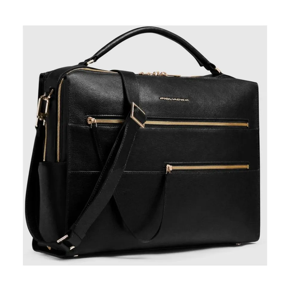 Piquadro W140 Briefcase er en læder laptop taske designet til organiserede daglige pendlerture og forretningsrejser, med et polstret, stødabsorberende laptoprum og RFID-beskyttelse for sikker opbevaring. Nøgleattributter: Sort | Nero | Læder | RFID-beskyttelse | Stødabsorberende beskyttelse til enheder | Stødabsorberende polstret laptoprum | Dedikeret iPad® rum | AirPods® lomme | Aftagelig og justerbar skulderrem | Top håndtag med syet konstruktion | Metal fødder for bundbeskyttelse | Bageste trolley sleeve | Lynlåslukning | To hovedrum | Kornet læder tekstur | Flere indvendige lommer og stiklommer | Dimensioner & pasform: 42 x 31 x 12 cm | Passer til laptops op til 15,6 tommer | Sammensætning & pleje: Læder | Foring: 100% Polyester | For læder: rengør med et neutralt voksbaseret læderprodukt påført med en blød klud; må ikke nedsænkes i vand; dup tør hvis våd; undgå direkte varme og strygning. For stof foring: rengør med en fugtig svamp og mild sæbe, skyl og lufttør.