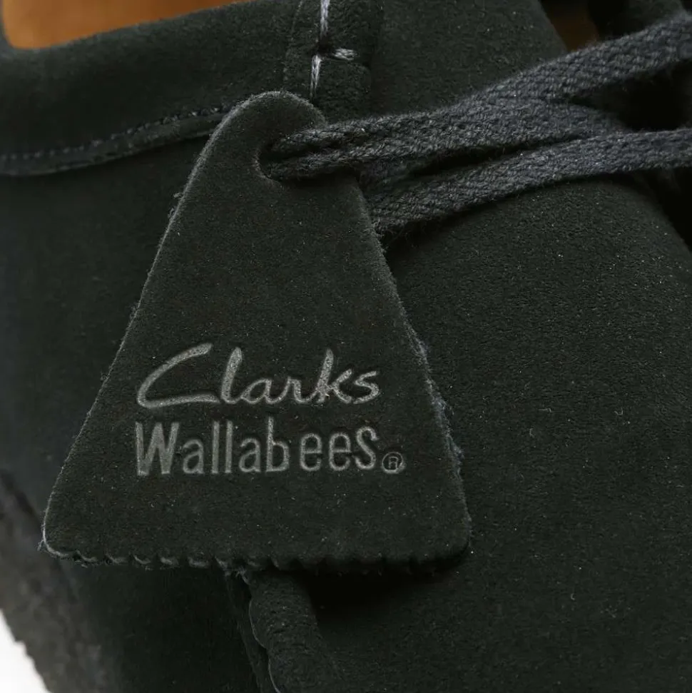 Opgrader din afslappede stil med disse ikoniske sorte Clarks Wallabee mokkasinsko. Lavet af ruskind med en klisk snørebånd og signatur crepesål, er disse sko perfekte til hverdagsbrug. Det læderfor er en luksuriøs detalje, mens hælhøjden på 30 mm giver komfort og stil.