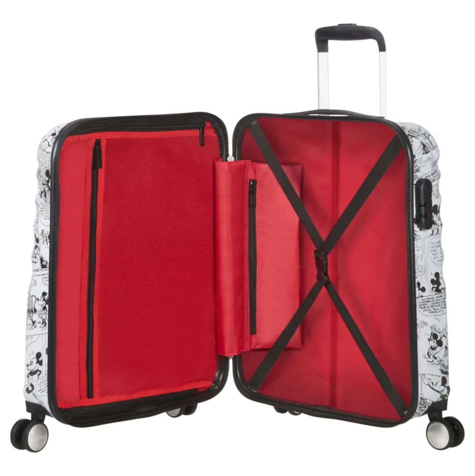 American Tourister Wave Disney 00125 Minnie Comics Trolley er en ABS hard-shell kabinekuffert med et legende Minnie Comics print og organiseret indvendig opbevaring. Ideel til håndbagage, den tilbyder en kompakt kapacitet på 36 L og nem mobilitet med fire hjul. Nøgleattributter: Minnie Comics | Hvid | ABS | Hård skal | 36 L volumen | Letvægt (2,6 kg) | Kombination lås lukning | Lynlåslukning | Bitubo teleskopisk trækhåndtag | 4 hjul | Øvre og nedre rum | Tøjstrop i nedre rum | Indvendige lommer og rumdeler | Minnie Comics print | Frontlogo | Kabinetrolley silhuet | Øvre bærehåndtag | Dimensioner & pasform: 55 x 40 x 20 cm | Håndbagage størrelse | Sammensætning & pleje: ABS skal | Polyester foring | Aftørres med en fugtig klud. Må ikke maskinvaskes.