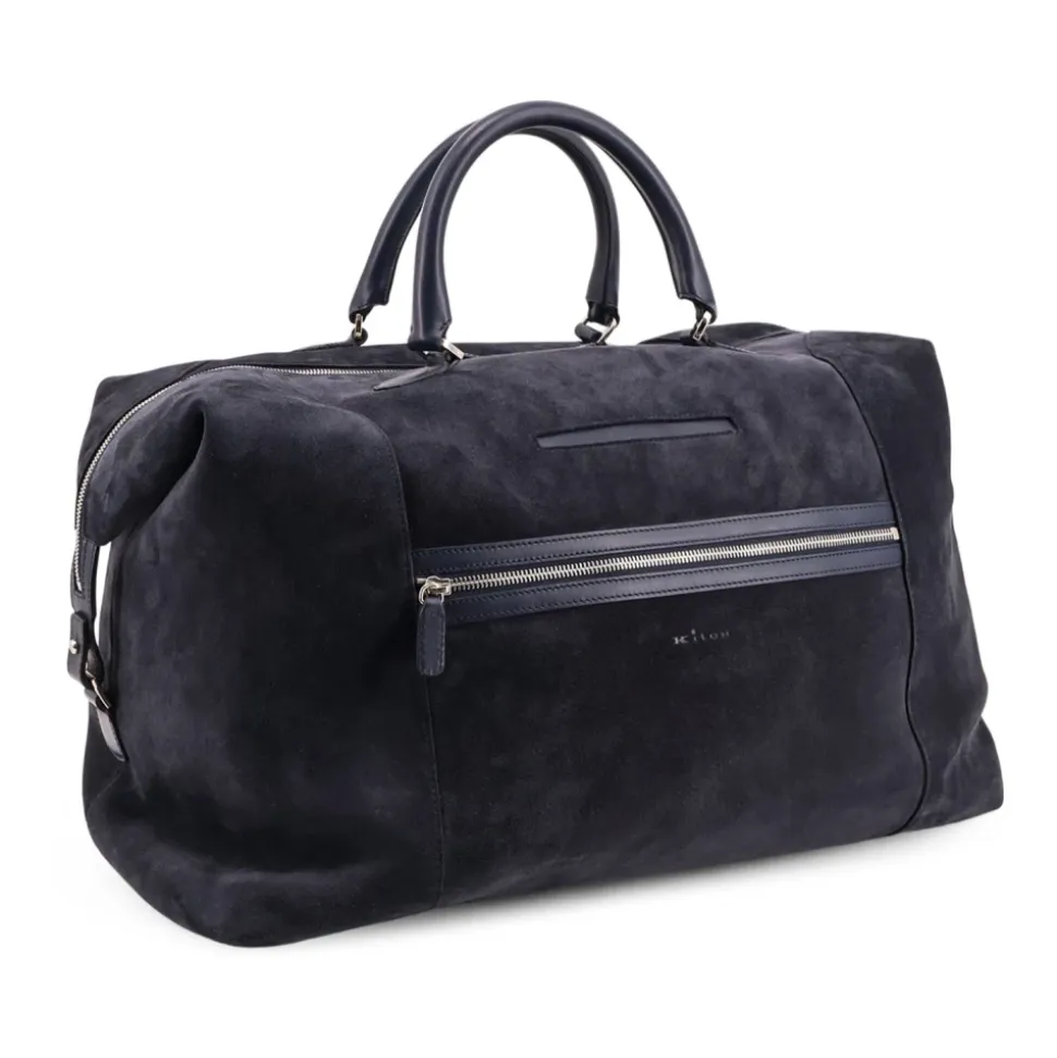 Kiton Weekendtaske er en ruskindstaske med dobbelte læderhåndtag og en lynlåslukning med dobbelt skyder, designet til stilfulde korte ture og weekendrejser. Nøgleattributter: Blå | Ruskind | Dobbelte læderhåndtag | Lynlåslukning med dobbelt skyder | En lynlåslomme foran | En lynlåslomme indvendigt | Graveret logo på forsiden | Ruskind finish | Fremstillet i Italien | Dimensioner & pasform: B: 70 cm | H: 43 cm | D: 24 cm | Sammensætning & pleje: Ruskind | Læder