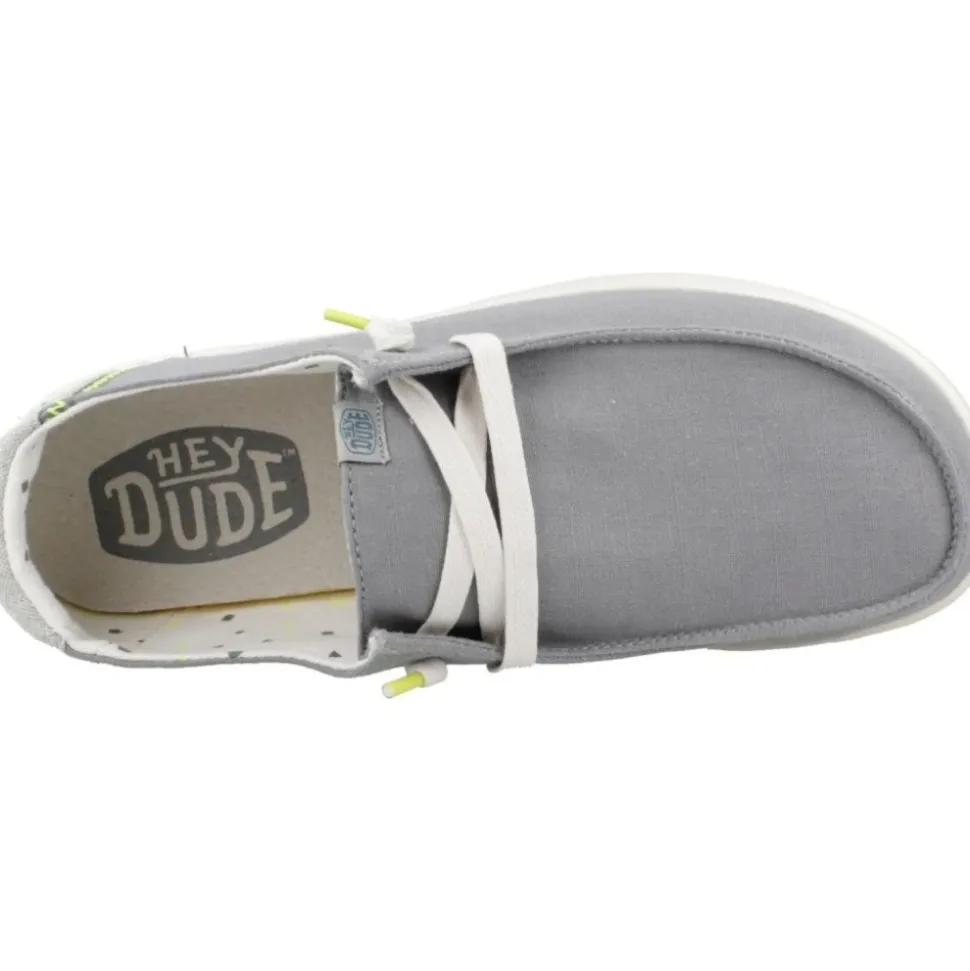 Hey Dude Wendy Rise er en forhøjet loafer i mokkasinstil, der kombinerer en let, åndbar tekstiloverdel med en polstret EVA-skumsål for komfort i hverdagen og nem brug. Nøgleattributter: Grå | Grøn | Tekstil | Let | Åndbar | Skridsikker sål | Nem at vaske | Udtagelig skumindersål | Easy-on system | Klar til rejser | Moc-toe silhuet | Platform (rise) ydersål | Vævede snørebånd | Dimensioner og pasform: Afslappet pasform | Sammensætning og pleje: Tekstiloverdel | EVA-skumsål | Udtagelig skumindersål | Nem at vaske.