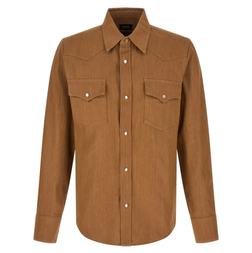 A.P.C. Western Shirt er en beklædningsfarvet denimskjorte i bomuld, der kombinerer klassiske western-detaljer med hverdagsbrug. Den er designet til afslappet lag-på-lag og har en spids krave og trykknaplukning for et tidløst, utilitaristisk look. Vigtigste egenskaber: Brun | Bomuld | Trykknaplukning foran | To brystlommer med spidse flapper | Lange manchetærmer | Spids krave | Western-inspireret bærestykke | Beklædningsfarvet denim i bomuld | Perlemorsfarvede trykknapper | Dimensioner og pasform: Normal pasform | Materiale og pleje: 100% bomuld | Maskinvask kold (30°C), vrangen ud.