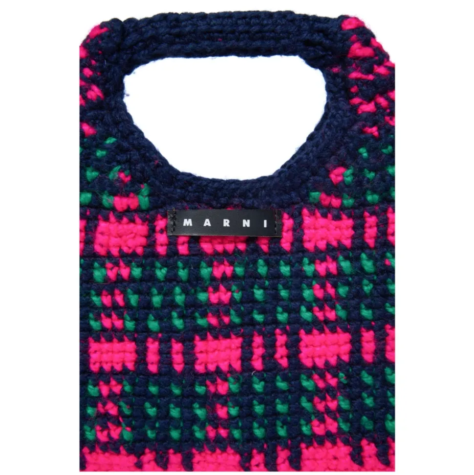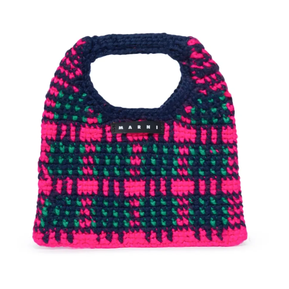 Marni Wooly Crochet Check Tasken er et stilfuldt håndholdt tilbehør med et unikt hæklet ternet design og et institutionelt logo-mærke, perfekt til særlige lejligheder. Produkt detaljer: Fuxia | Multicolor | Akryl | Hæklet ternet konstruktion | Håndholdt design | Institutionelt logo-mærke | Dimensioner og pasform: 15 cm højde | 25 cm total højde | 25 cm bredde | Hankefald: 7 cm | Sammensætning og pleje: 100% Akryl | Applikation: 100% Koskindslæder
