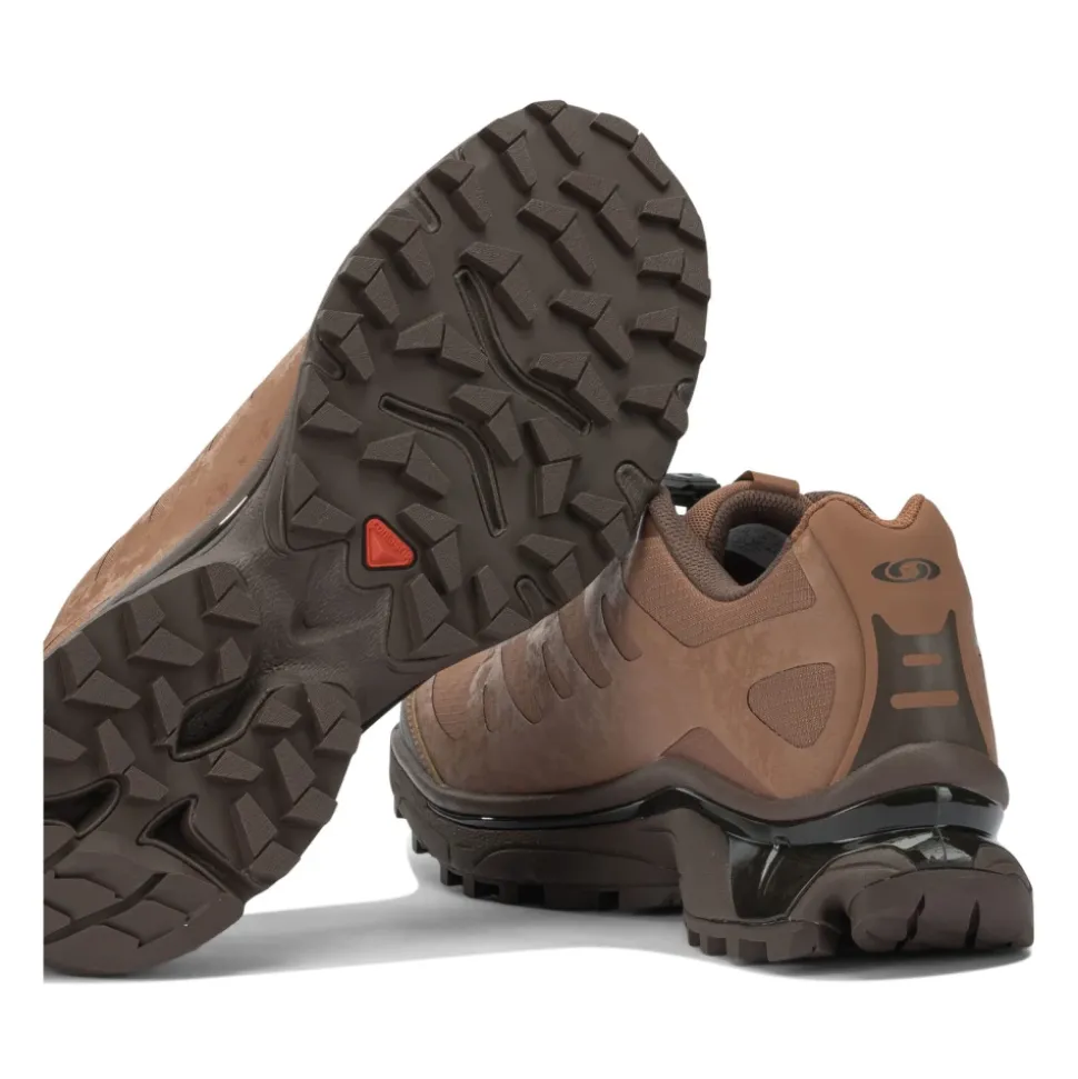 Salomon XT-4 OG Protective bringer trailløbsklar beskyttelse til en kompakt silhuet, bygget til at håndtere varierende vejrforhold og ujævne overflader. Dens teksturerede ripstop-overdel og forstærkede overlejringer prioriterer holdbarhed og greb til udendørs brug. Nøgleegenskaber: Russet | French roast | Tekstil | Vejrbestandig konstruktion | Contagrip-ydersål med højt greb | Responsiv EVA-støddæmpning med dobbelt densitet | Stabilitetsfokuseret chassis | Hurtigt snøresystem | Kontureret mellemsål for støddæmpning | OrthoLite-indersål | Tekstureret teknisk stofoverdel | Robust, kompakt trail-inspireret silhuet | Beskyttende forfod- og hæloverlejringer | Dimensioner og pasform: Regular fit | Drop: 10 mm | Vægt pr. enhed: 369 g | Agile Chassis i fuld længde for stabilitet | Sammensætning og pleje: Tekstil (ripstop-overdel) | Syntetiske overlejringer | EVA-mellemsål med dobbelt densitet | Contagrip-gummiydersål | OrthoLite-indersål