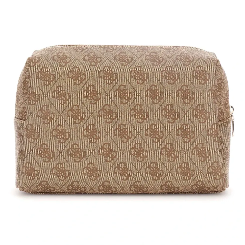 Guess Zamira Cosmetic Pouch er en kompakt toilettaske med et metallogo og lynlåslukning, designet til at holde makeup og småting organiseret på farten. Nøgleattributter: Beige | Polyurethan | Lynlåslukning | Kompakt størrelse | Metallogo | Rektangulær form | Mål & pasform: Højde: 18 cm | Bredde ved bund: 25 cm | Dybde: 9 cm | Sammensætning & pleje: 100% Polyurethan